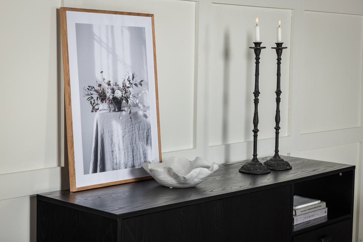 Med sin sofistikerade svarta färg och detaljer i mässing ger Gold byrån en känsla av lyx och glamour till ditt hem. De subtila mässingsdetaljerna skapar en vacker kontrast till den djupa svarta färgen och ger byrån en tidlös och elegant design. Gold byrån är tillverkad av material, inklusive MDF och Faner, och har stadiga ben i stål som ger den stabilitet och hållbarhet. Den är inte bara vacker att se på, utan den är också praktisk med gott om utrymme för att organisera dina kläder, accessoarer eller andra föremål. Du kan till och med använda den som en plats att placera dina favoritljusstakar och skapa en avslappnad och inbjudande atmosfär i ditt hem.