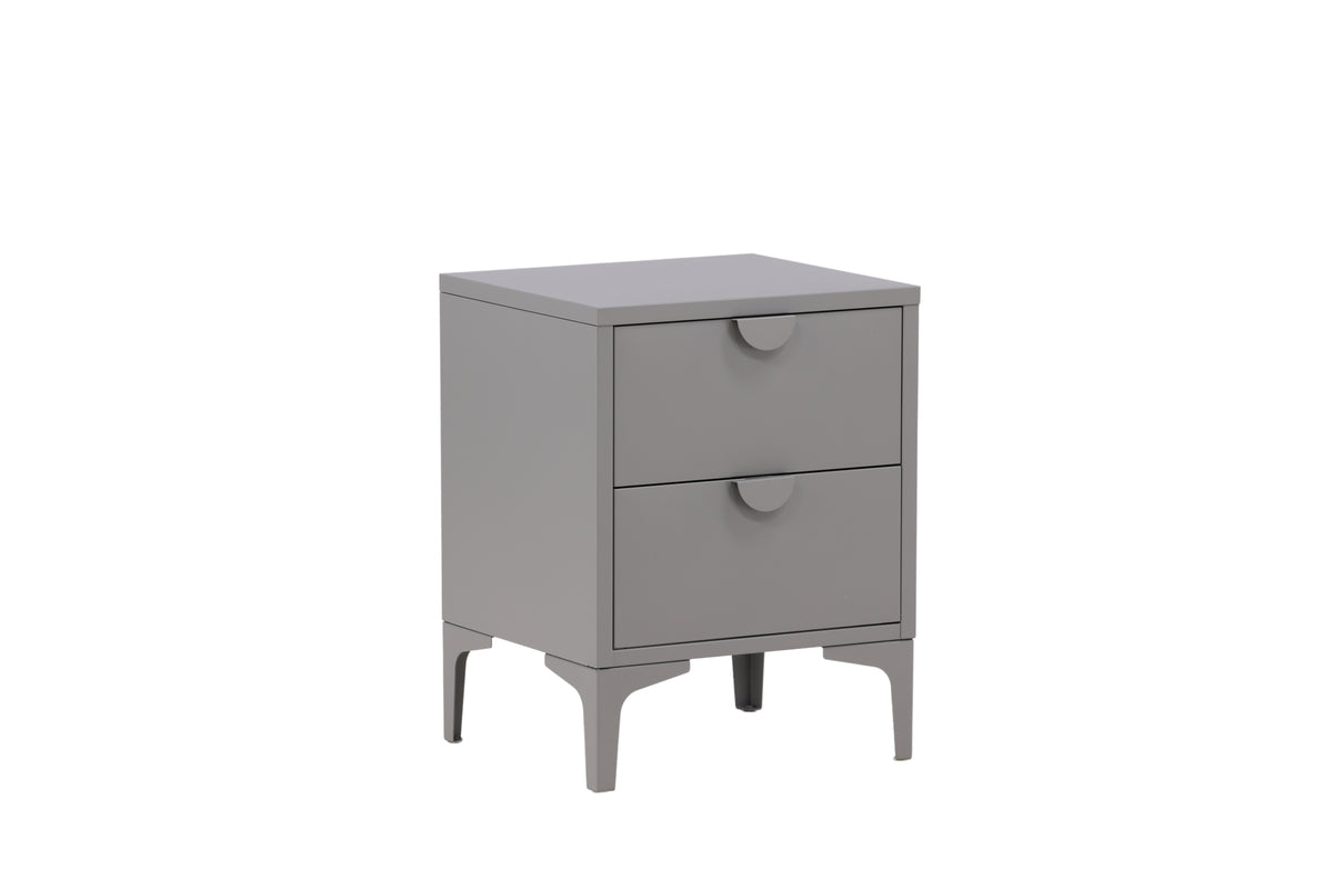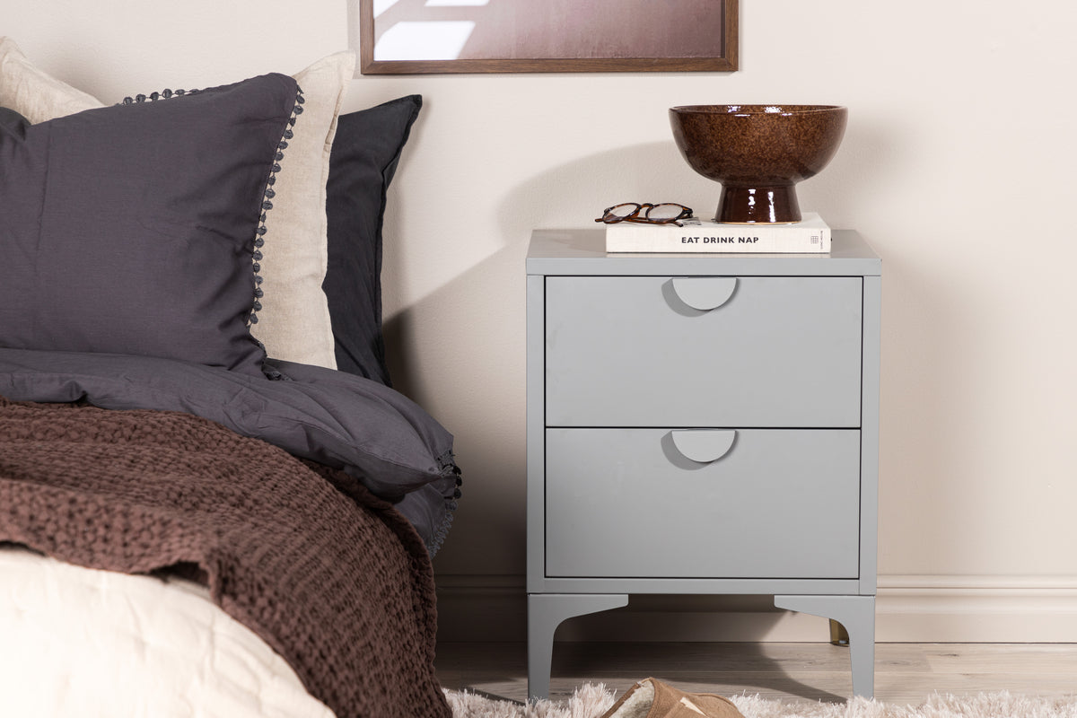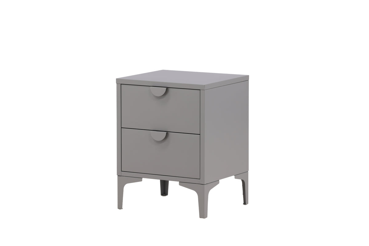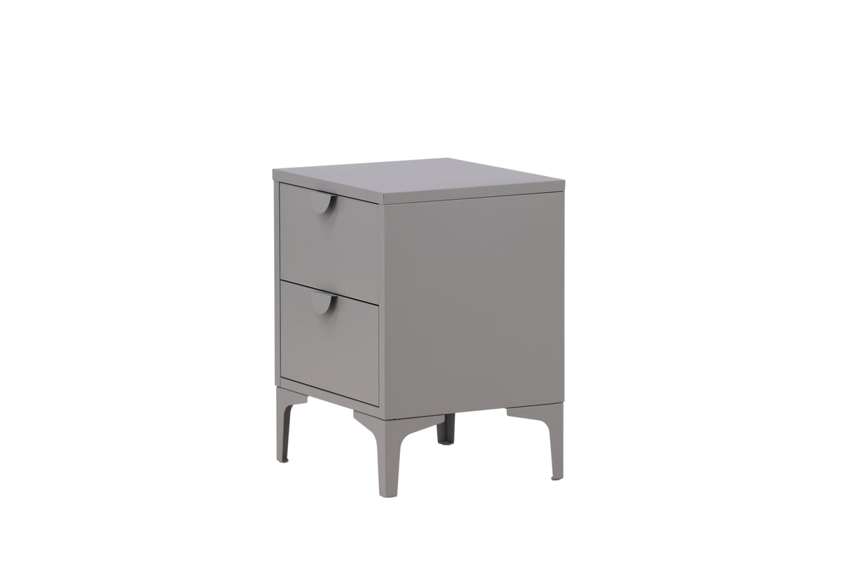 Sängbord i serien Piring är perfekt som förvaringslösning! Det kvadratiska sidobordet i grått stål har två lådor för dold förvaring och stilren ovansida med lagom plats för en sänglampa, en bra bok och eventuell prydlig inredningsdetalj för modern look.