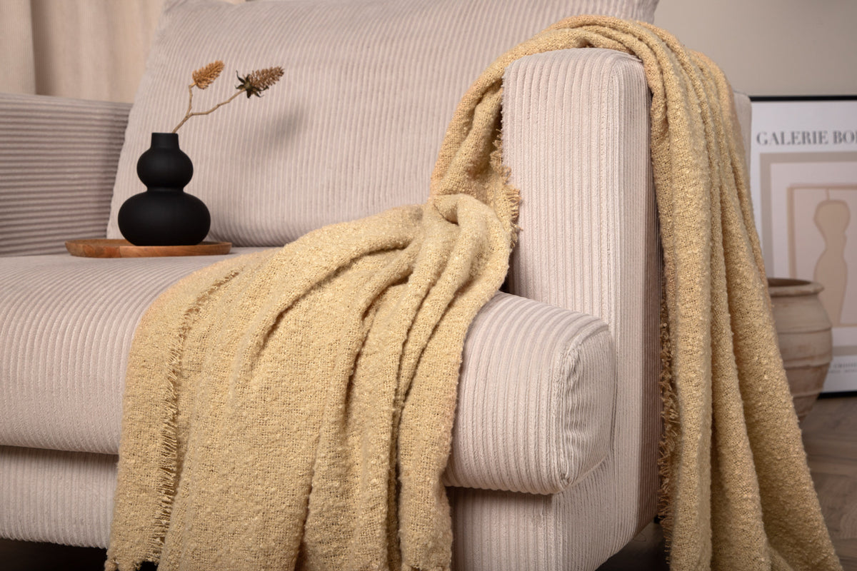 Pläden Stanly är tillverkad i akryl och har en stilren och följsam känsla i ett tunnare material. Pläden finns i fem olika jordnära kulörer som du enklelt matchar med annan inredning i hemmet. Använd som dekorativ inredning på sängen eller soffan, eller vira in dig i pläden när du läser en god bok framför brasan för en mysigare känsla!