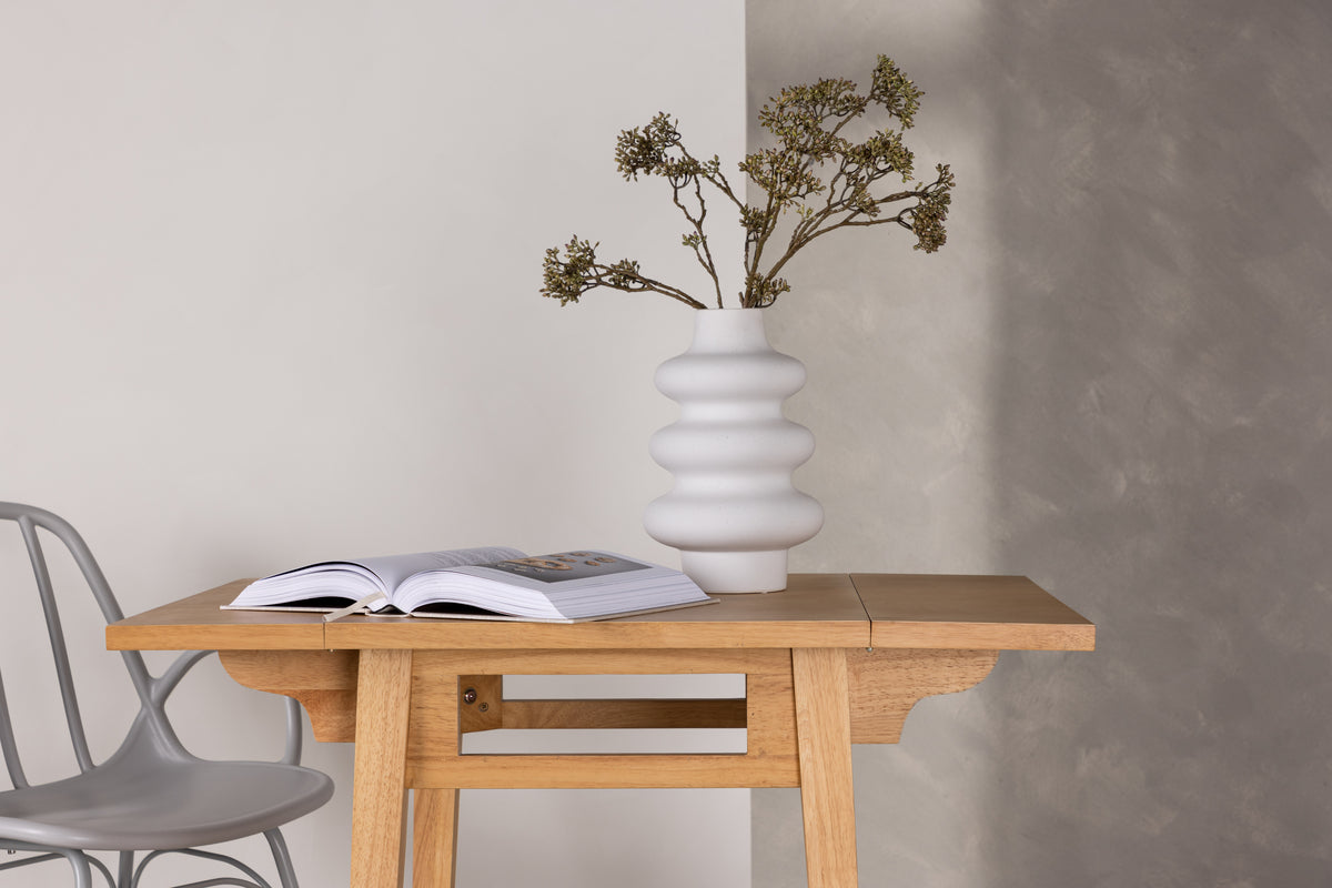 Yakidon - det perfekta bordet för det mindre köket! Det här bordet är i MDF-look i gummiträ och har en schysst ekfärgad finish. Bordsskivan är kvadratisk och går att fälla upp två förlängningsskivor på vardera kant. Benen är lätt utsvängda och klassiskt utformade. Pryd ditt hem och matcha med ett par bekväma stolar så får du en nätt matgrupp att slå dig ner vid!