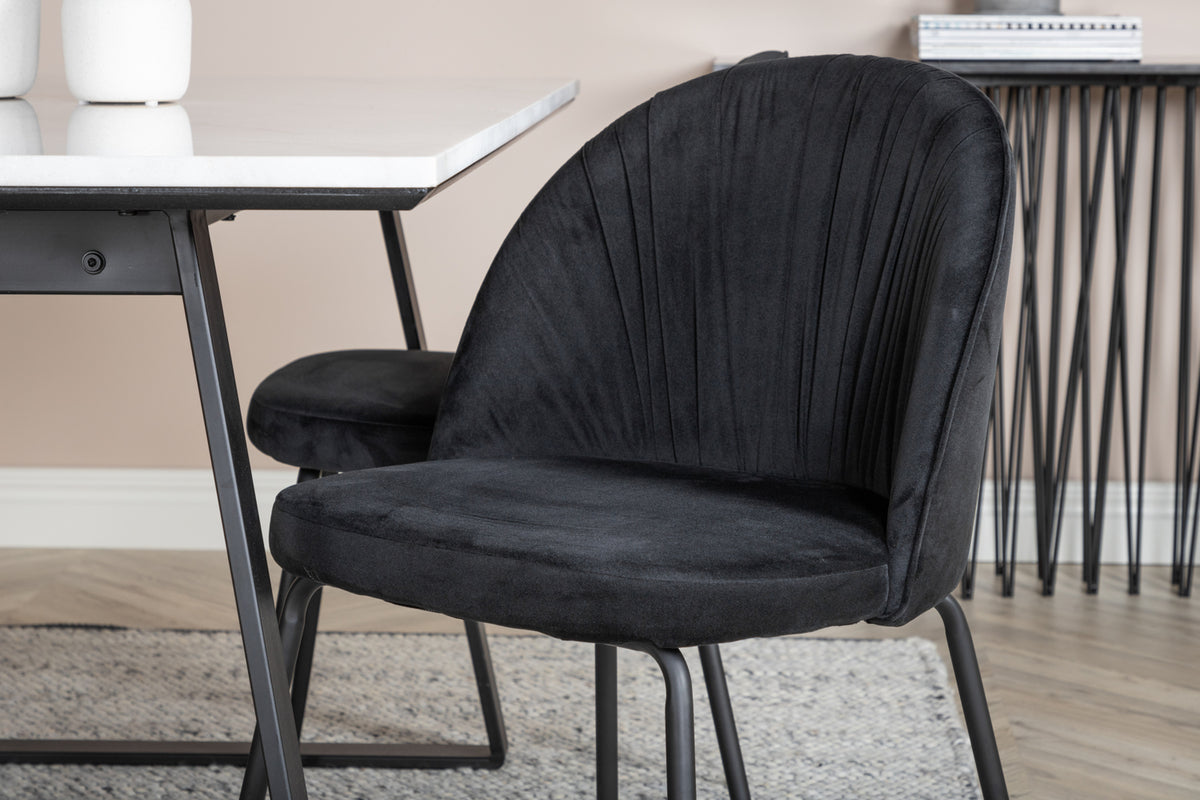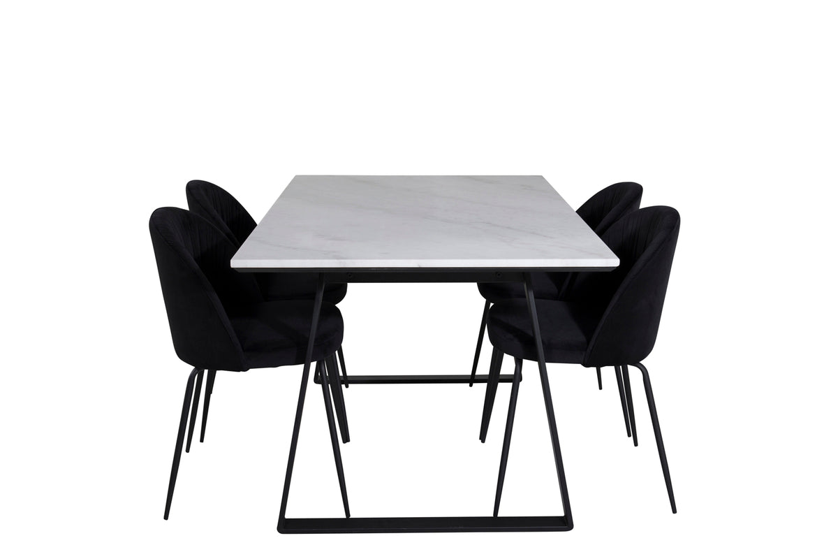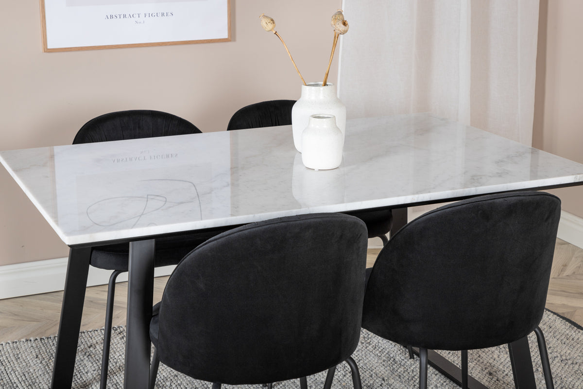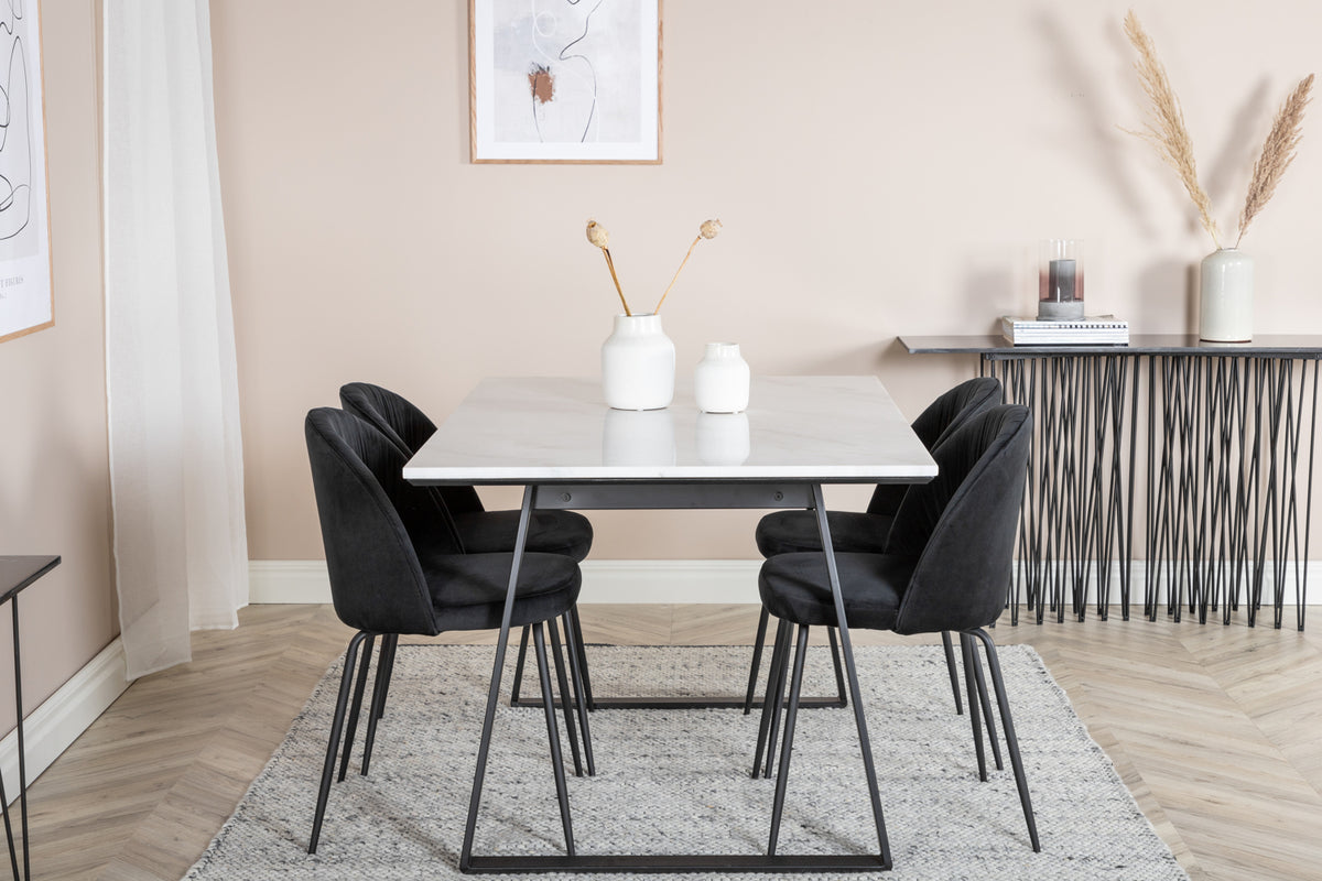 Matbord Estelle i en smäcker design, tillsammans med 4 st matstolar Wrinkles - den perfekta kombinationen för dig som vill ha en trendig matgrupp. Stolarnas höga sittkomfort bjuder in till långa och härliga stunder för umgänge!