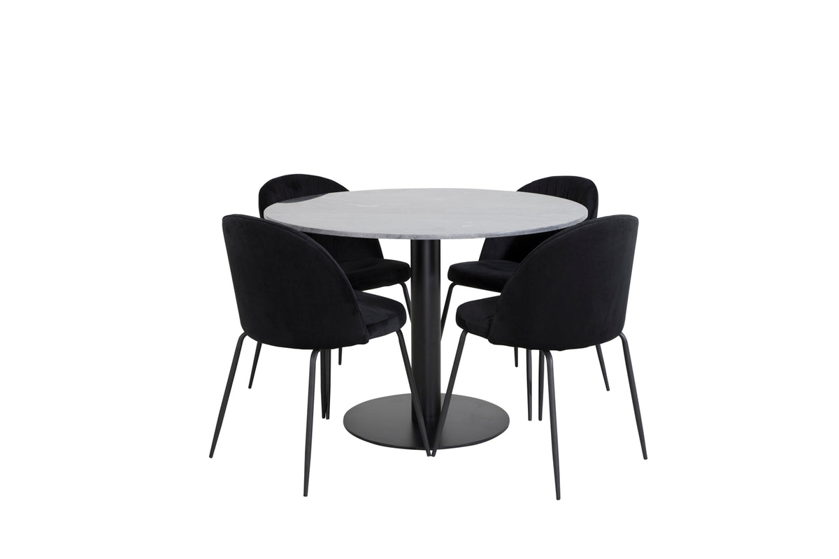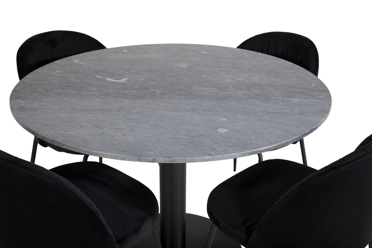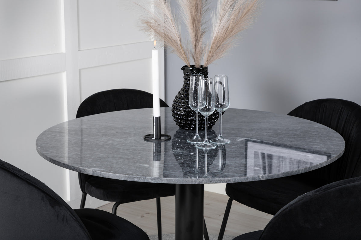 Ett snyggt matbord med marmorsskiva i serien Estelle, här tillsammans med de 4 st sköna matstolarna Wrinkles - den perfekta kombinationen för dig som vill ha en trendig matgrupp. Låt tiden vid matbordet bli till en av dagens höjdpunkter!