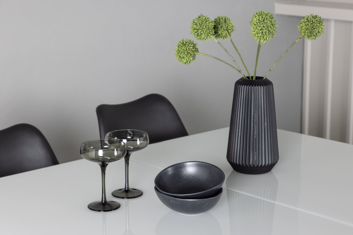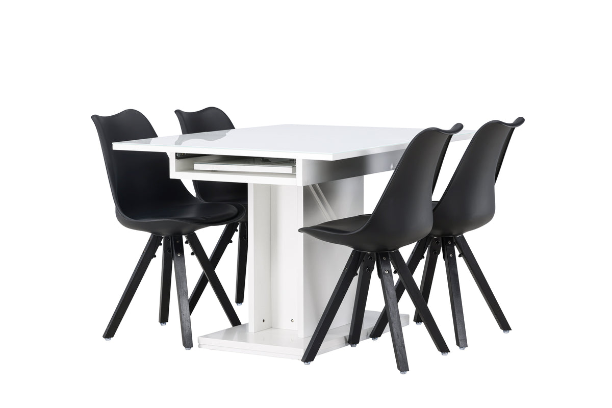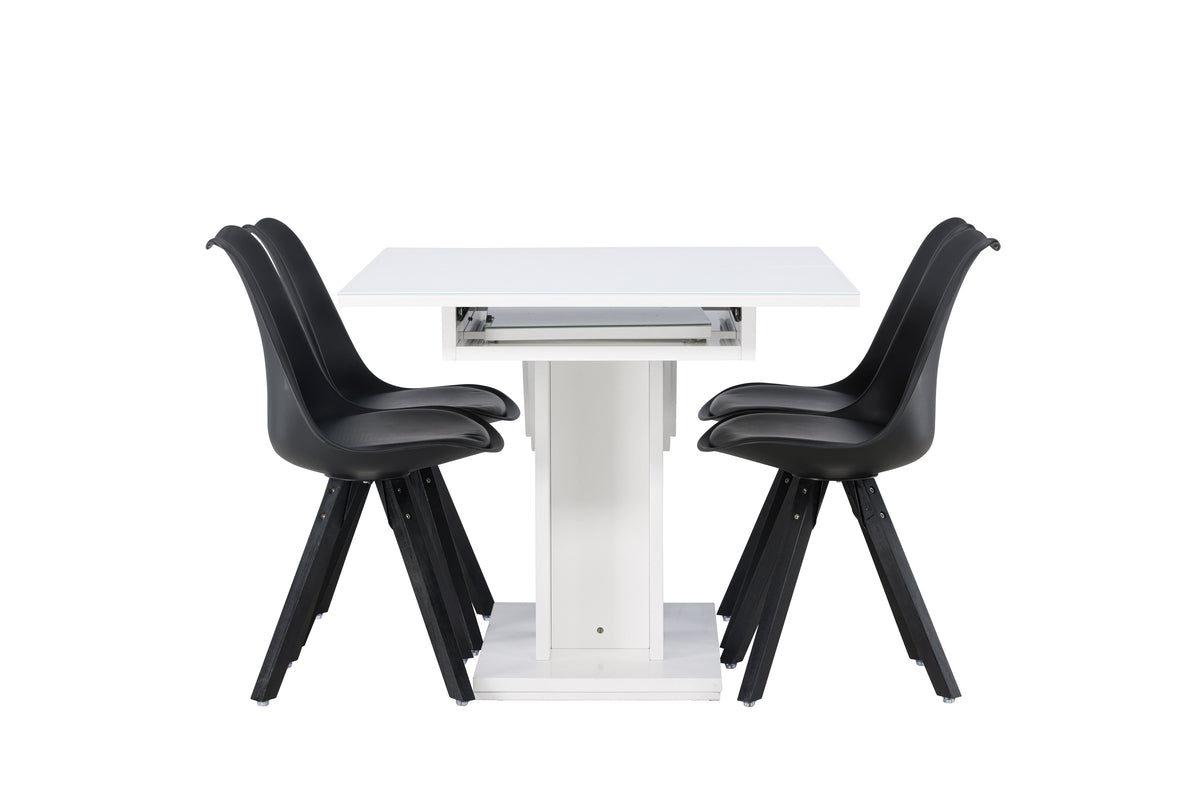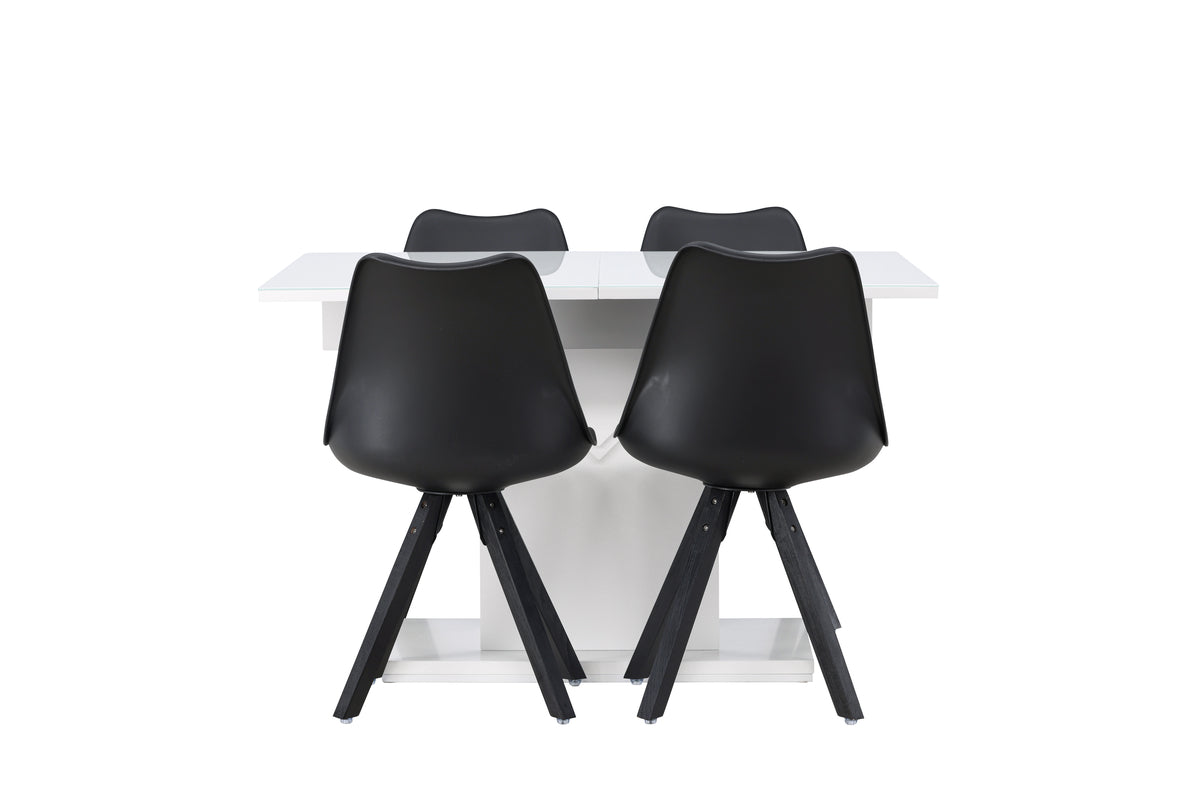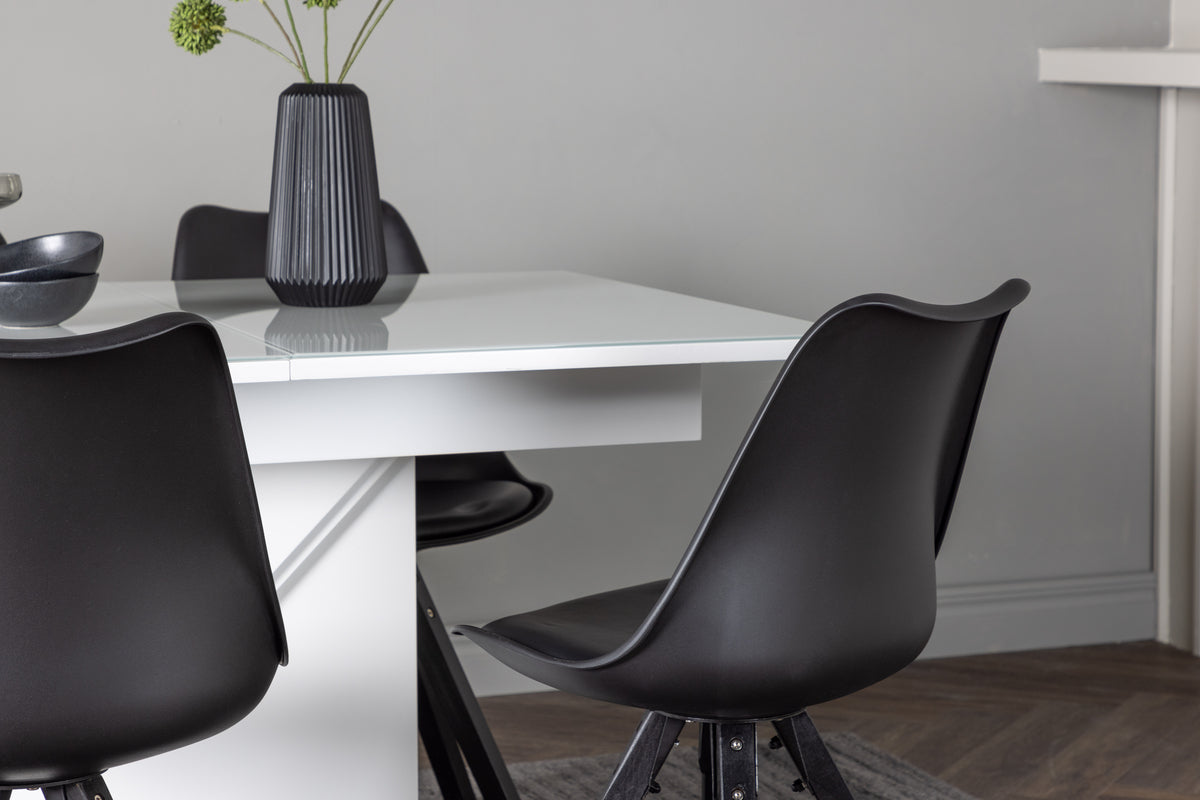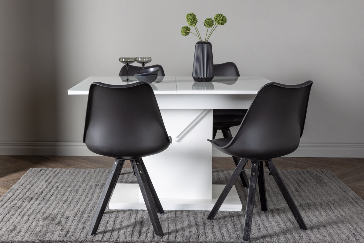 Här i underbar kombination med våra praktiska matstolar från serien Zeno. Stolarnas svarta plastmaterial i rygg och sits ger inte bara en modern och elegant look, utan ger också en bekväm upplevelse tack vare den inbyggda sittdynan. Här kommer du att känna dig helt avslappnad och njuta av varje måltid. Ge ditt hem den där extra touchen av stil och komfort med den här rektangulära matgruppen som är förlängningsbar. Skapa en atmosfär som får dig att längta efter middagar med familj och vänner!