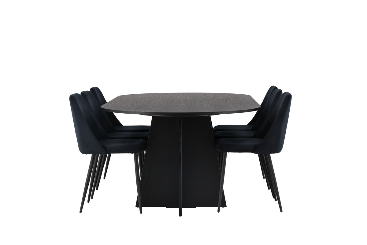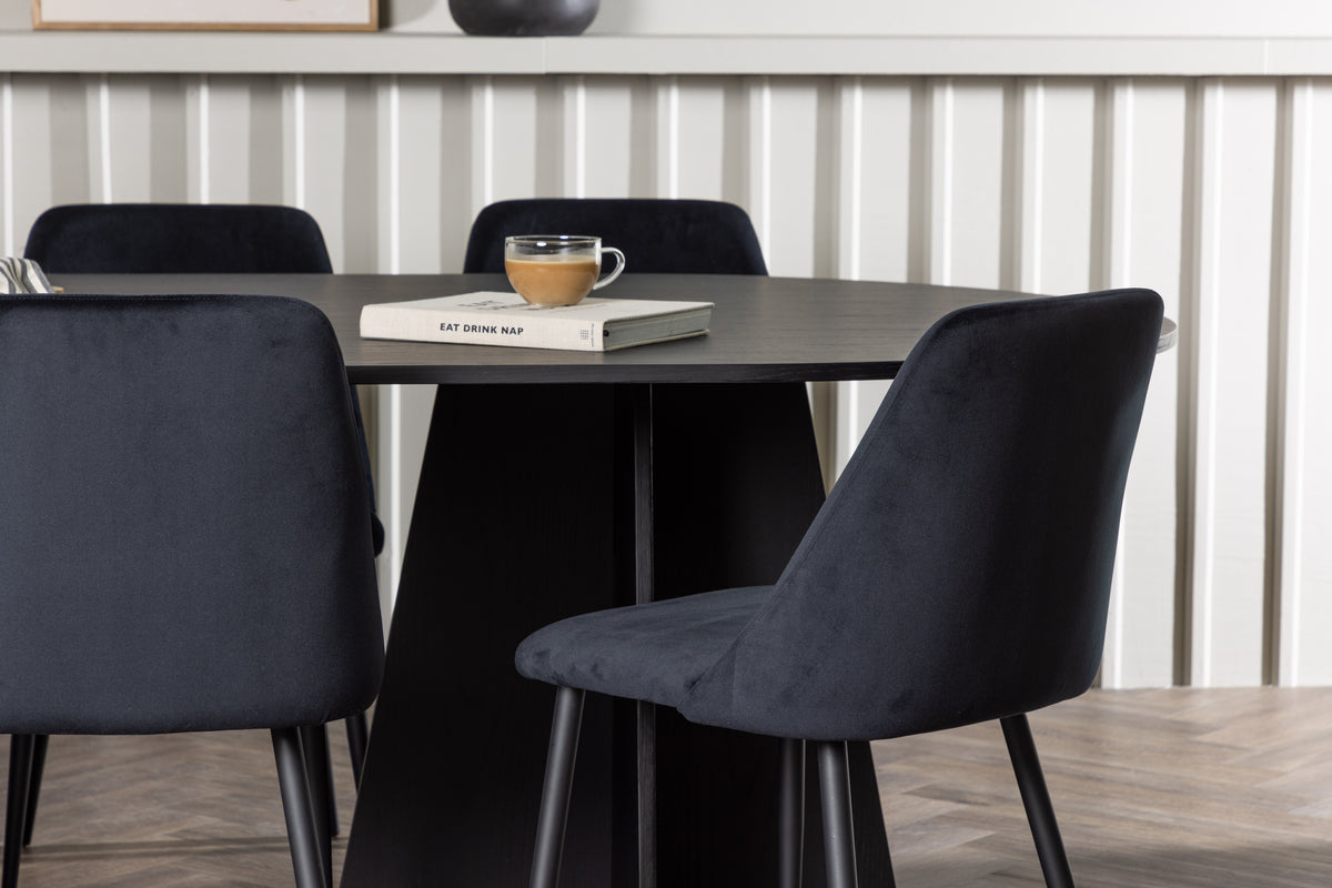 Kom in i vardagsrummet och möts av en enastående matgrupp som kombinerar stil och komfort på ett elegant sätt! Det ovala matbordet Bootcut är ett mästerverk av modern design. Med en oval bordsskiva tillverkad av svart MDF med fanéer, skapar det en känsla av exklusivitet i ditt hem.